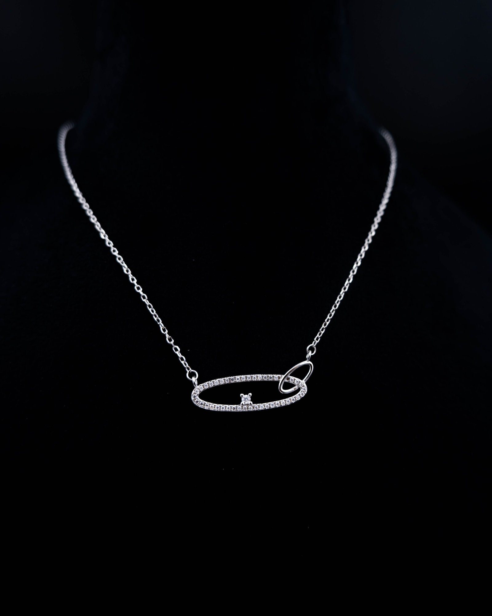 Introducing the Ecliptic Chain Necklace by Kasi Jewels, elegantly crafted in 925 sterling silver for girls and women who love refined luxury. This unique necklace features a sleek oval pendant encrusted with sparkling stones and an intersecting loop, symbolizing unity and endless possibilities. Its modern yet timeless design makes it perfect for parties, gifting friends, or adding a sophisticated touch to daily wear. Lightweight and hypoallergenic, it ensures all-day comfort without compromising on style. Celebrate special moments or elevate your own look with this dazzling piece—an ideal gift choice for birthdays, celebrations, and unforgettable nights out.