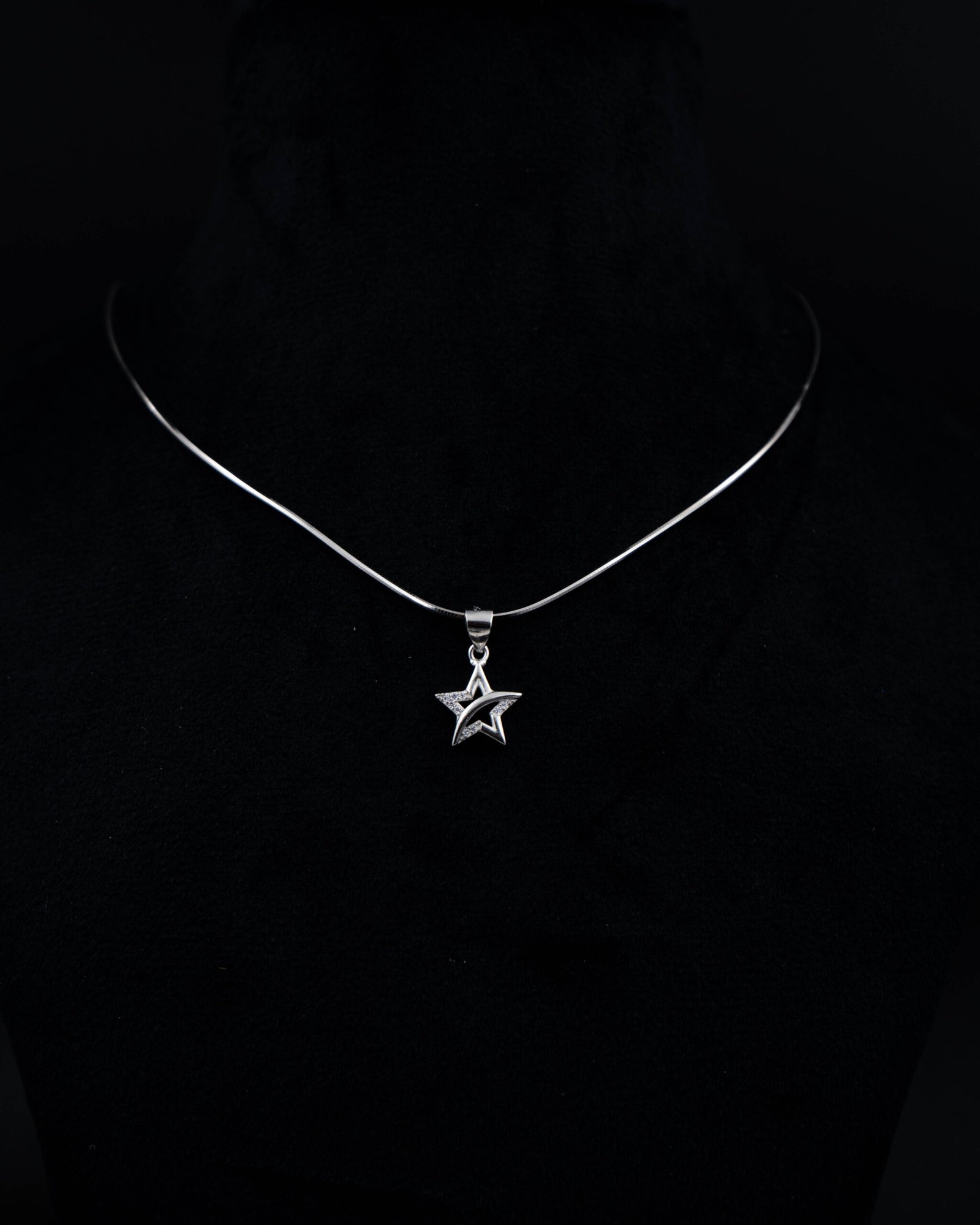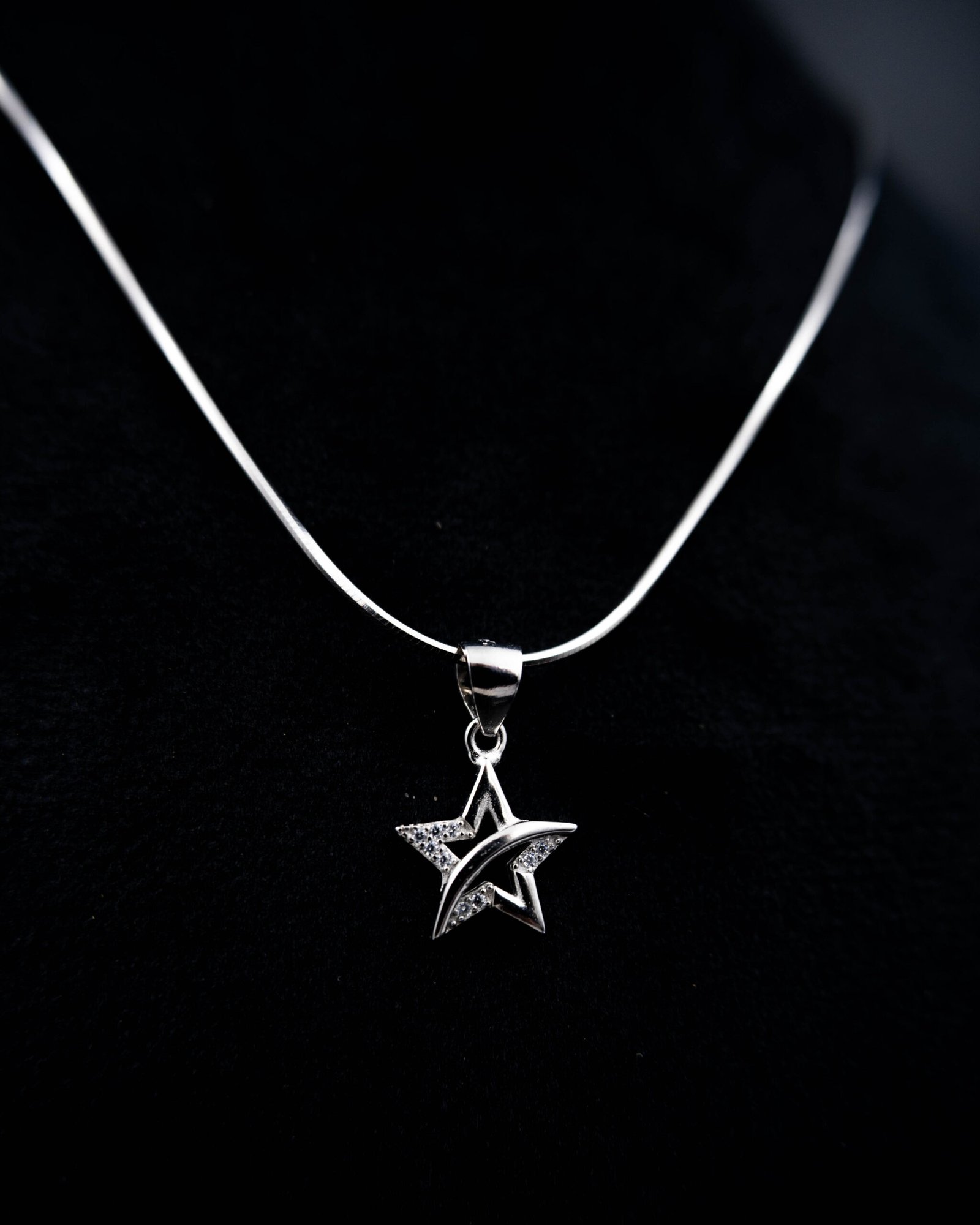 Shine bright with the Shooting Star Silver Pendant, exquisitely crafted in sterling silver. This stunning piece features an open star design with a graceful, stone-studded arc, capturing the magic of a shooting star in motion. Its sleek and sparkling details make it a standout accessory for girls and women, easily elevating both everyday and party looks. Lightweight and hypoallergenic, it offers comfort and sophistication, making it a thoughtful gift for friends or loved ones. Celebrate special moments or express unique style with this radiant symbol of wishes and possibilities from Kasi Jewels.